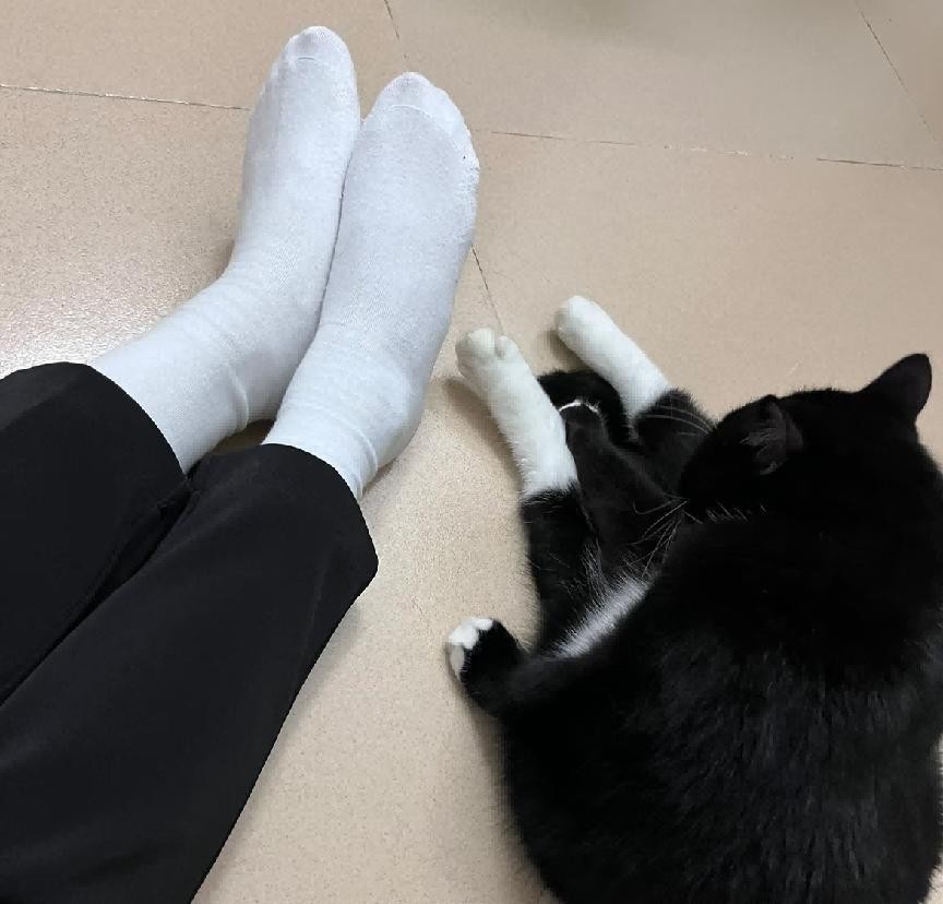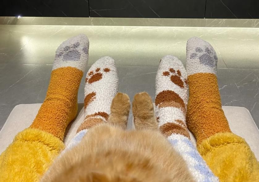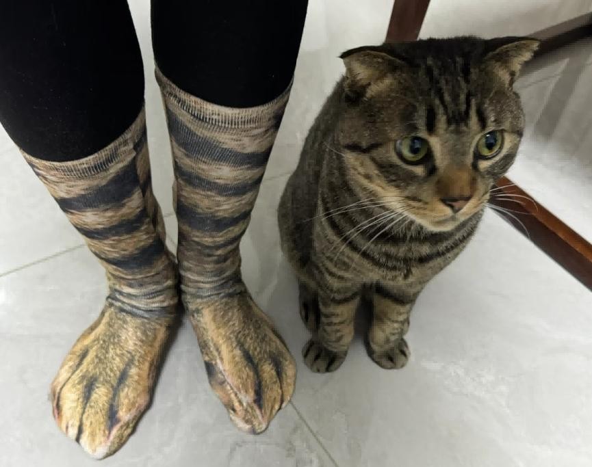 穿和猫同款花纹的袜子,和猫站在一起,谁能不相信这是亲生的?