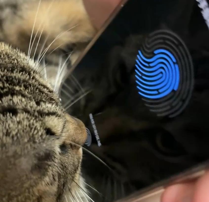 只要在手机上录入猫的鼻纹,以后猫的鼻纹就能解锁人的手机,这就是独一无二的证明。