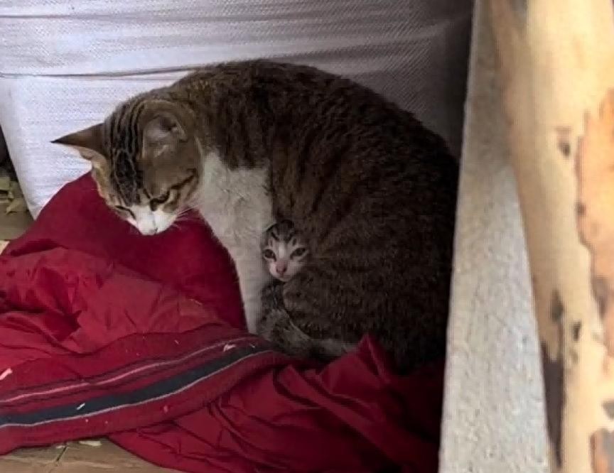 有一天,她去看小猫时,猫妈妈发现她过来,赶忙把小猫护在身下,抬头看她的眼神都带着几分警惕。