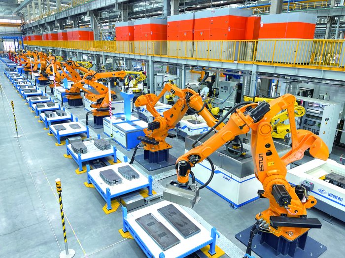 在中创智领的“灯塔工厂”里,150台机器人屈臂摆身,7台智能行车和30台自动导向搬运车有序流动,物料配送、抓取、切割、拼装、焊接等一系列操作行云流水。这座全球煤机行业首个“灯塔工厂”将生产周期从28天压缩至9天,人效翻倍提升,成为企业变革的最佳见证。